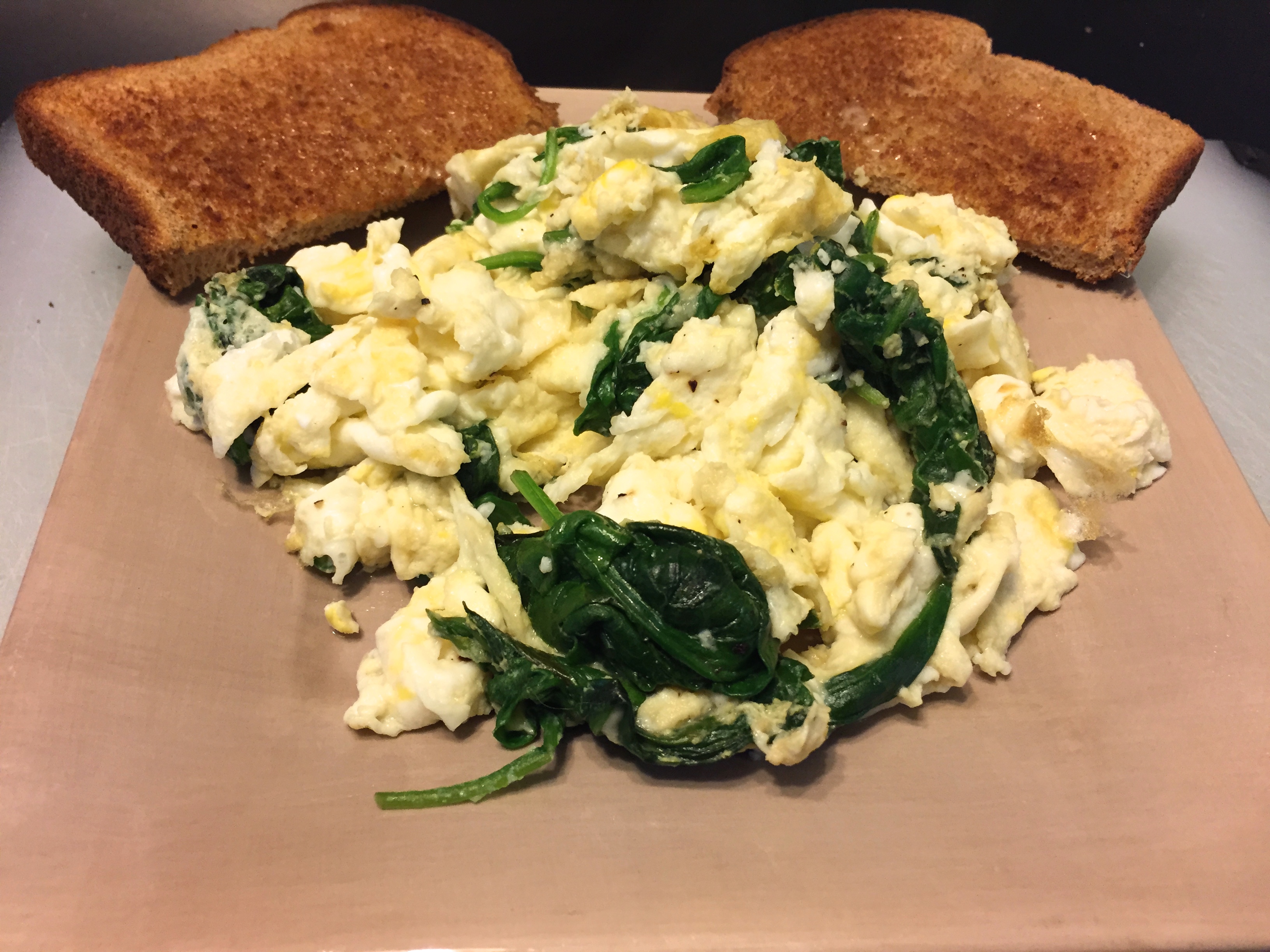 BREAKFAST: 1Egg + 1 cup Egg whites Scrambled with Spinach, 1 tsp oil and 1 piece of Whole Grain Toast (1 Red, 1 Green, 1 Yellow, 1 Teaspoon)