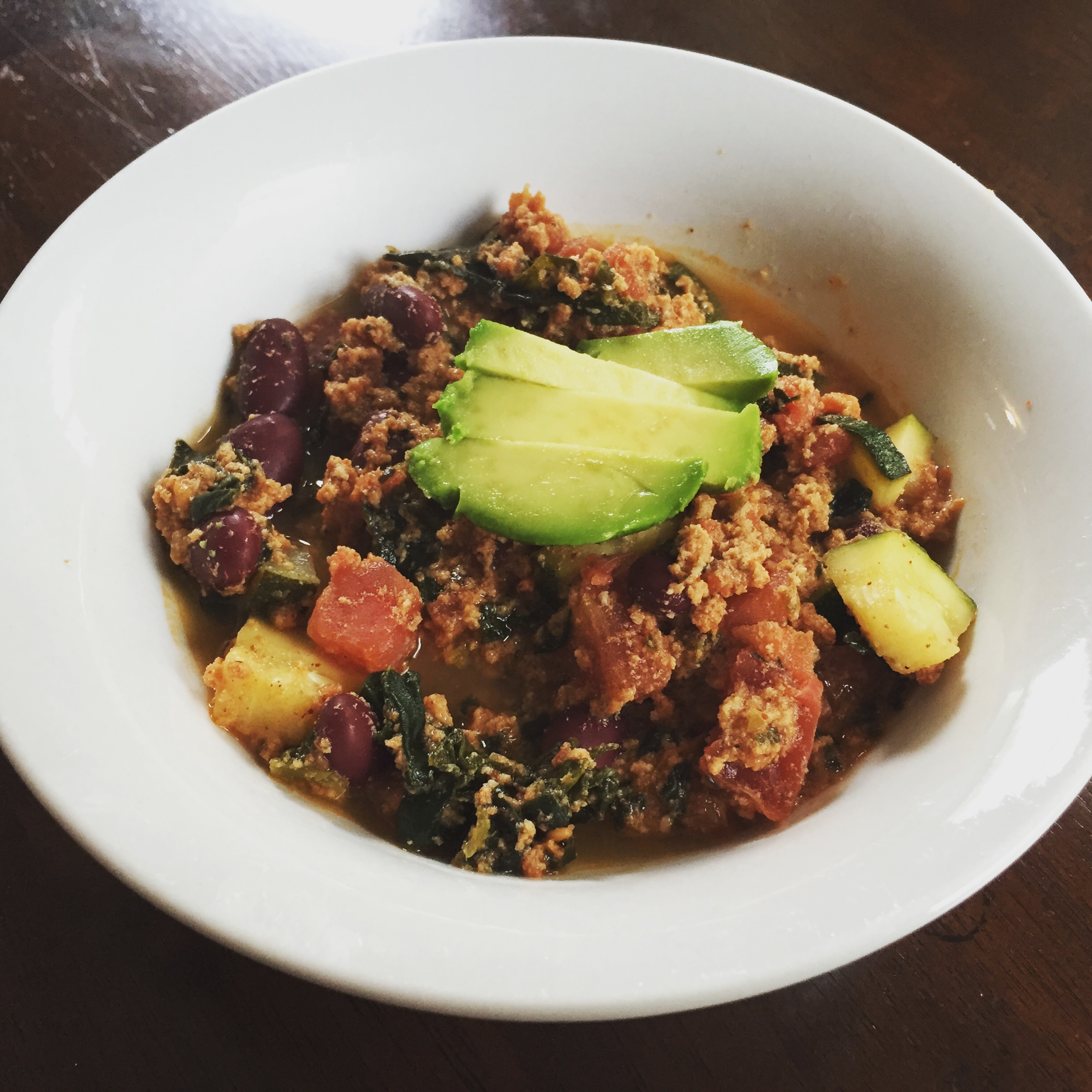 Marc and I were looking for something different to eat for dinner. We have been doing so much grilling that I wanted to change things up a bit. I made a big turkey chili with beans & lots of veggies in the crockpot, and man I’m glad I did. I love chili. 1. it’s super easy to make 2. it creates lots of leftovers and 3. it’s so tasty. I served my chili over brown rice and had some avocado as well. There were so many flavors in that one bowl.